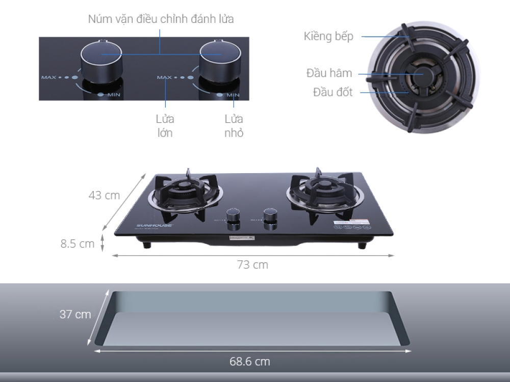 Bếp gas âm Sunhouse SHB7736 mang lại cho mọi không gian bếp nét hiện đại, thời trang, đẳng cấp, đun nấu tiện lợi, tiết kiệm gas.