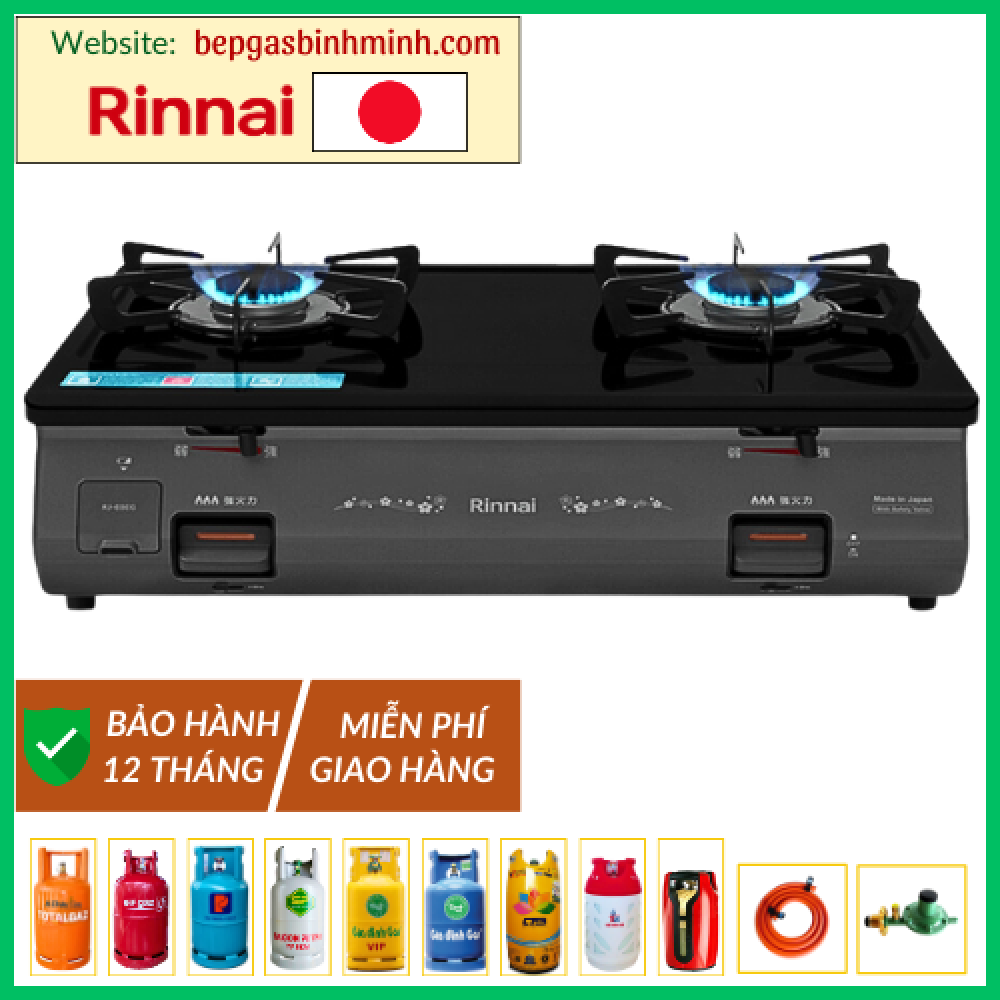 Bếp gas Rinnai RJ-69EG sản xuất tại Rinnai Nhật Bản và được nhập khẩu trực tiếp về Việt Nam. Thiết kế mặt bếp đen toàn phần kết hợp khung màu xám với những họa tiết hoa văn ở mặt trước bếp gas, làm cho bếp gas trở nên đặc sắc và tạo điểm nhấn cho căn bếp nhà bạn nổi bật hơn.