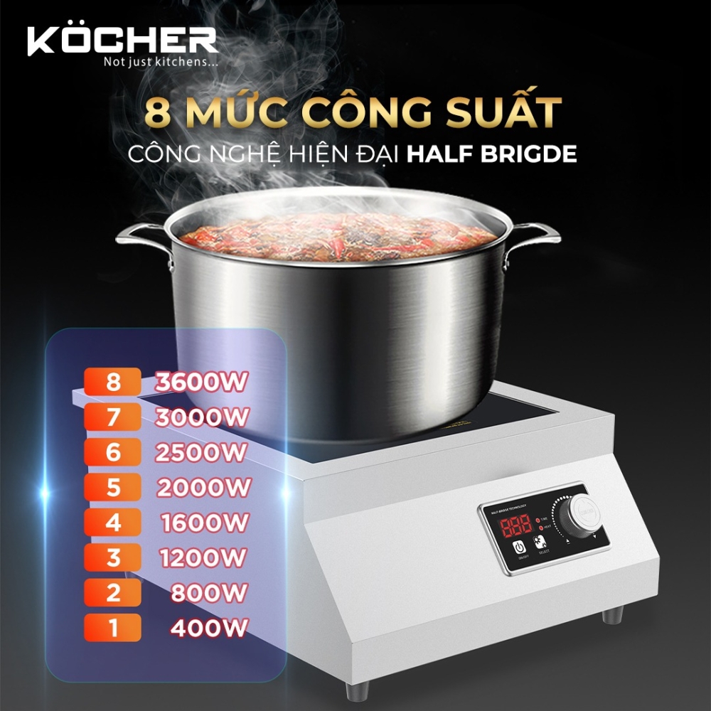Bếp từ công nghiêp CI-3600W nổi bật với công nghệ Half-Bridge hay còn gọi là induction Inverter là công nghệ biến tần sử dụng “Half-Bridge resonant type IGBT inverter”.Ứng dụng công nghệ half-bridge là việc sử dụng bộ vi xử lý thông minh giúp cố định công suất tiêu thụ điện khi đun nấu, khả năng đun liu riu ở các mức công suất thấp, giữ cho bếp gia nhiệt duy trì ổn định, không bị đóng ngắt liên tục như các dòng bếp thông thường, nhằm tránh hao phí trong quá trình sử dụng, tiết kiệm tối đa điện năng tiêu thụ và gia tăng tính năng thông minh cho bếp. Từ đó không phải bù phần năng lượng hao phí.