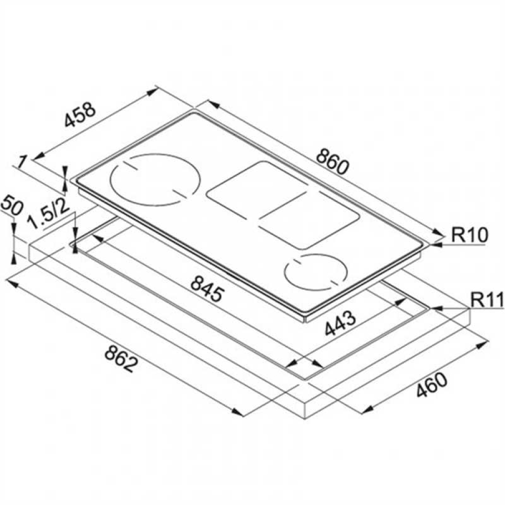 – Bếp từ 5 vùng nấu, kính Ceramic viền Inox.
