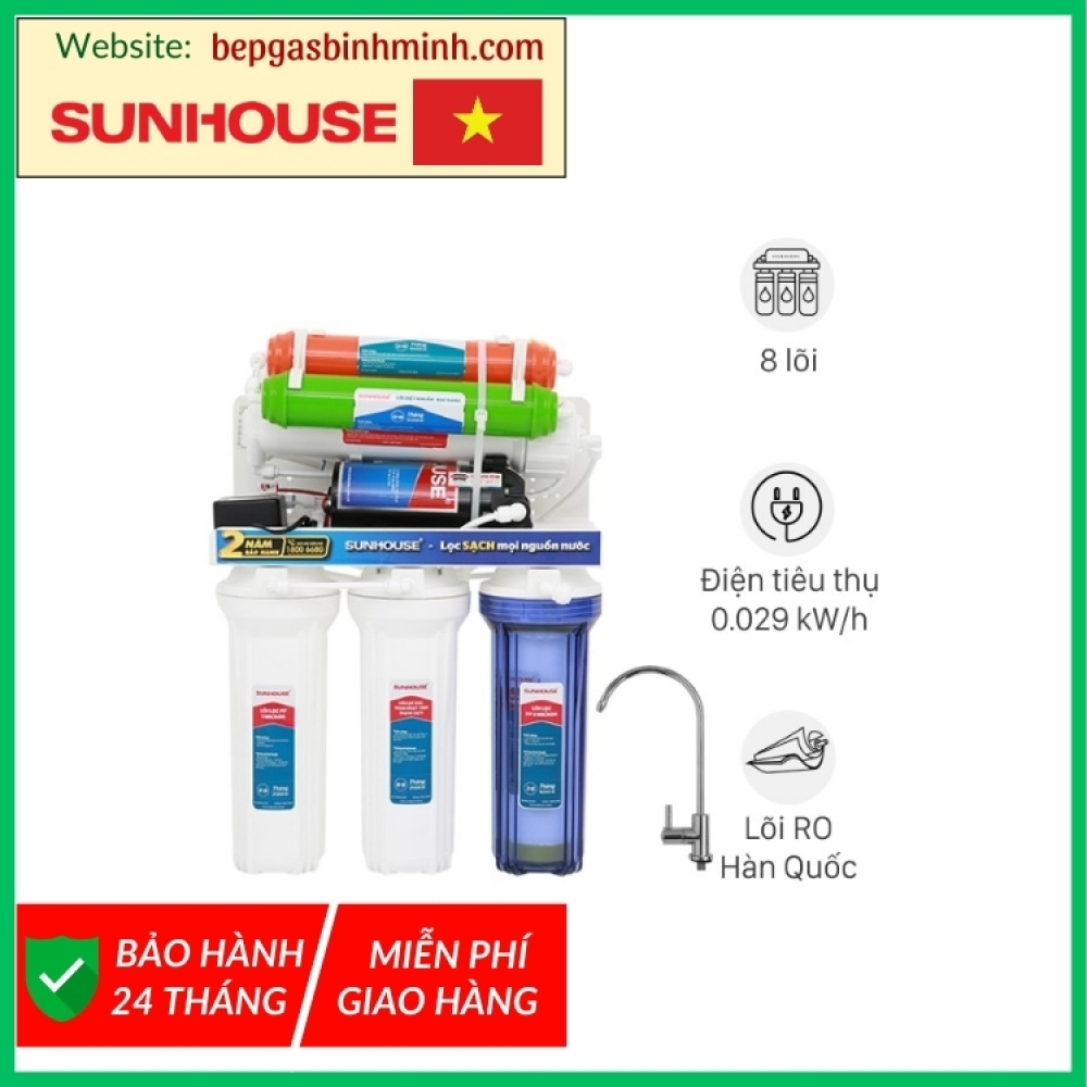 Máy lọc nước RO không vỏ Sunhouse SHA8878KV 8 lõi